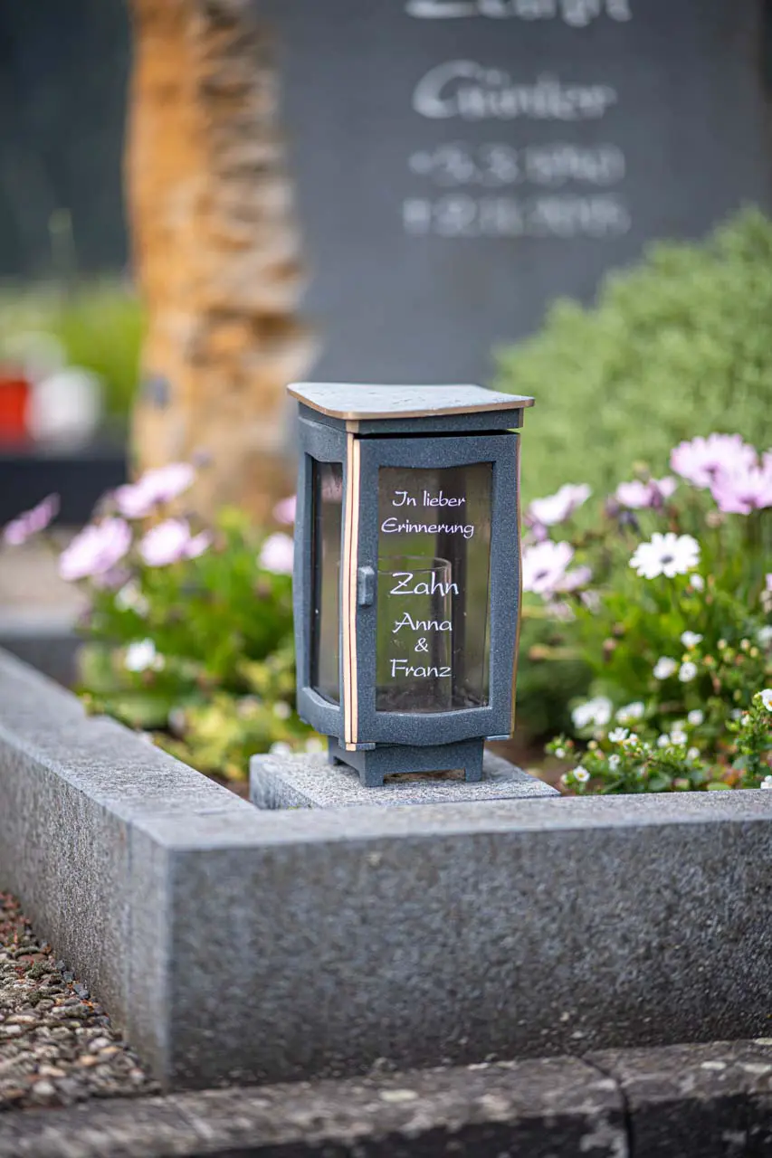Ergänzen Sie Ihr Grabmal mit passenden Elementen wie Vasen, Laternen oder Kreuzen. In unserer Ausstellung zeigen wir Ihnen gerne passende Exemplare und unterstützen Sie bei der Auswahl.
