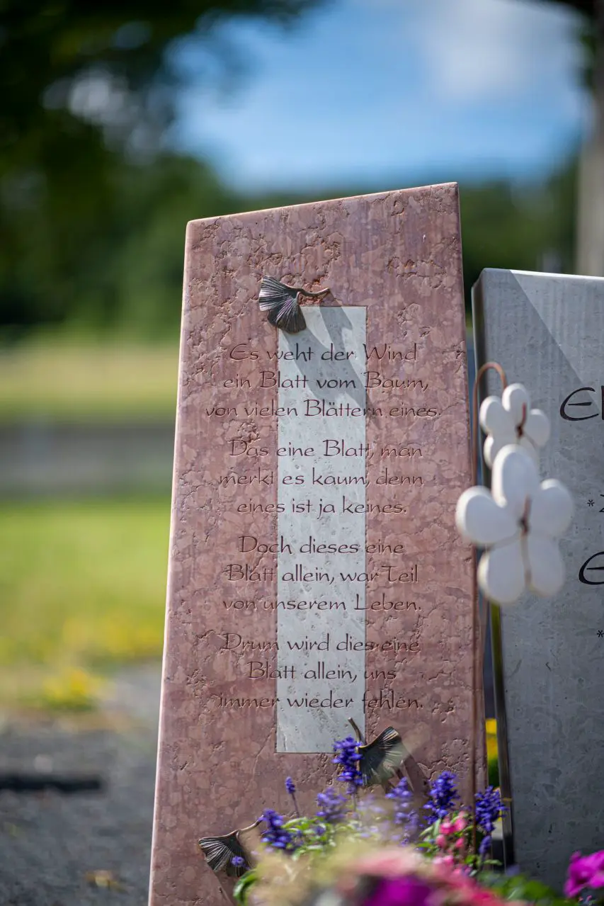 Ein Grabmal ist mehr als nur ein Stein – es ist ein Ort der Erinnerung, des Trosts und der Verbundenheit. Weil jeder Mensch einzigartig ist, sollte auch das Denkmal, das an ihn erinnert, individuell und mit Sorgfalt gestaltet sein.