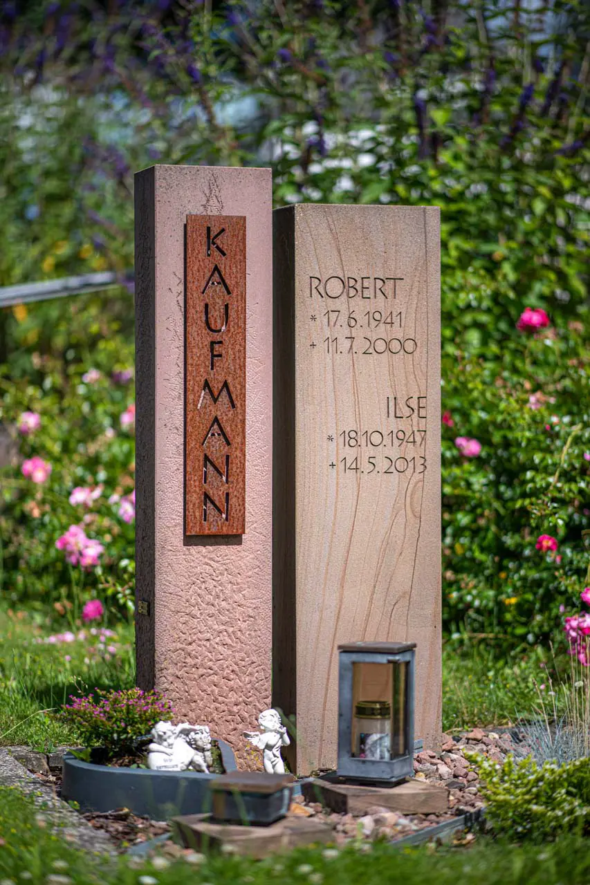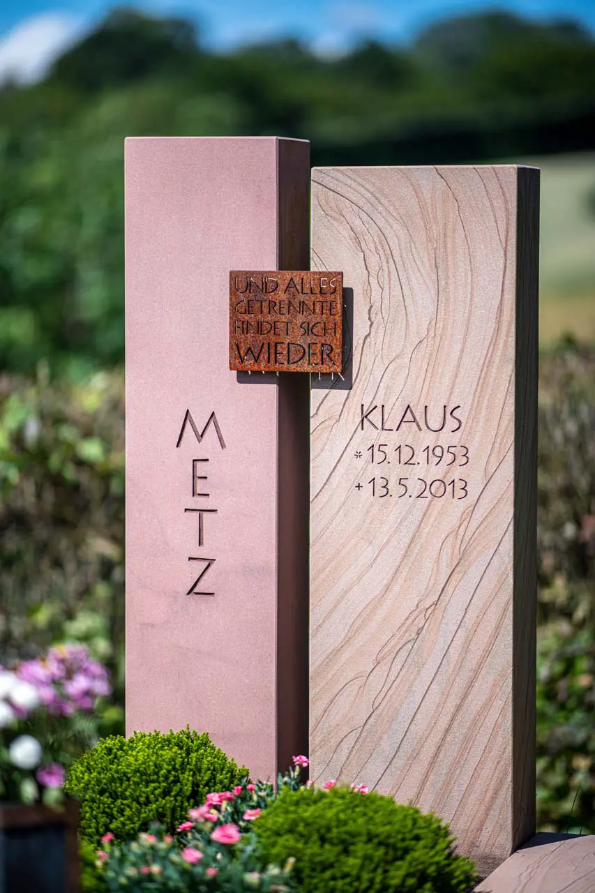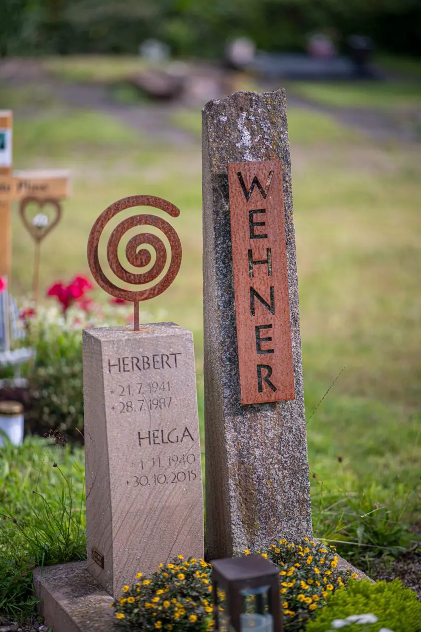 Corten-Stahl und Naturstein – zwei Materialien, die sich stilvoll ergänzen. Durch die Kombination entsteht eine moderne, zugleich zeitlose Ästhetik, die Individualität und Ausdruckskraft vereint. Ob als Akzent oder zentrales Gestaltungselement: Corten-Stahl verleiht dem Grabmal eine besondere Tiefe und Charakter. Wir zeigen Ihnen gerne die vielfältigen Möglichkeiten in unserer Ausstellung – für ein Denkmal, das auf stilvolle Weise berührt und in Erinnerung bleibt.